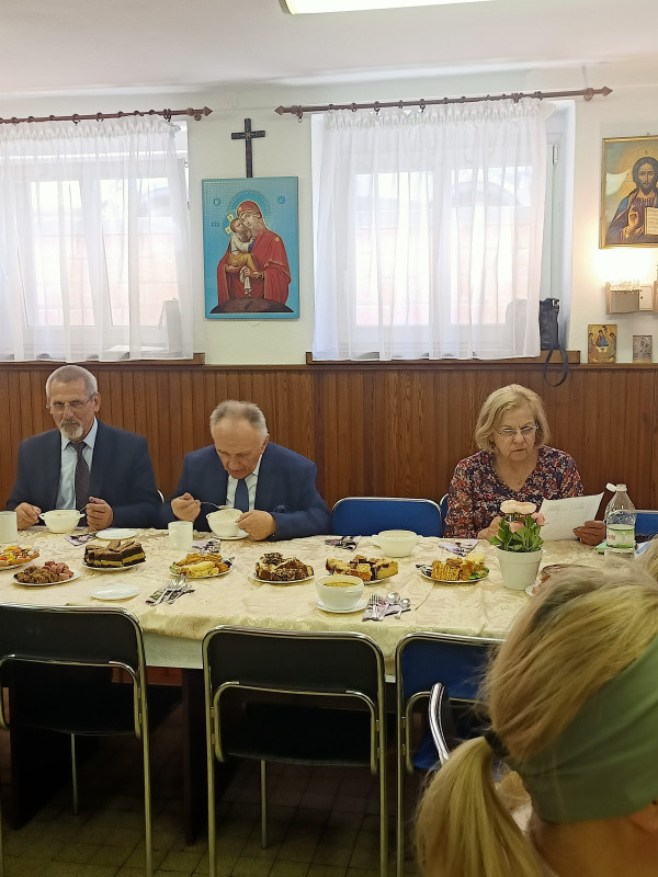 W godzinach popołudniowych, dzięki ogromnej otwartości i przychylności pani Olgi Charkiewicz – przewodniczącej, odbyło się spotkanie z licznym gronem pań z parafialnego Siestryczestwa[i]. Rozmowa rozpoczęła się w iście domowych warunkach, po chrześcijańsku i z tradycją - wspólną modlitwą i wspólnym posiłkiem. Warunki były wyjątkowe a i okazja szczególna do nawiązania bezpośrednich relacji, przekazania najistotniejszych informacji nt. tworzonego Charytatywnego Centrum Opieki i Pomocy oraz podejmowanych działań na rzecz osób z niepełnosprawnościami, starszych, chorych i samotnych.