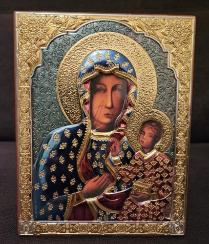 Fundacja ELPIS przekazała na aukcję WOŚP ikonę przedstawiającą wizerunek Matki Boskiej Częstochowskiej. Ikona ma wymiary 14 cm x 18 cm. Wykonana na desce, pokryta bogato zdobioną koszulką o głębokim duchowym znaczeniu. Posiada z tyłu nóżkę do swobodnego i wygodnego ustawienia w kąciku modlitewnym lub zawieszenia na ścianie.